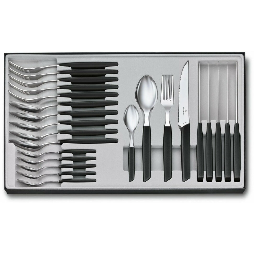 Набор кухонный Victorinox Swiss Modern Table Set (6 ножей steak,6 вилок,6 ложек,6 ложек), Черный Vx69093.12W.24