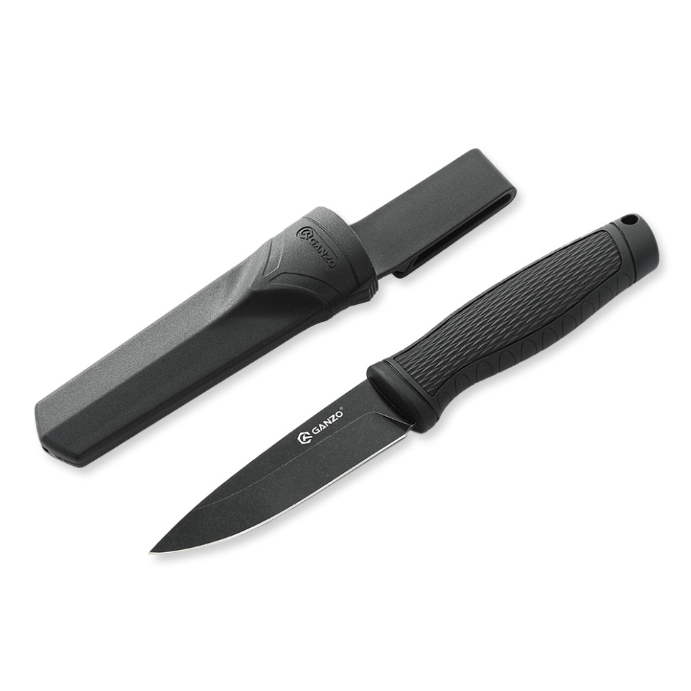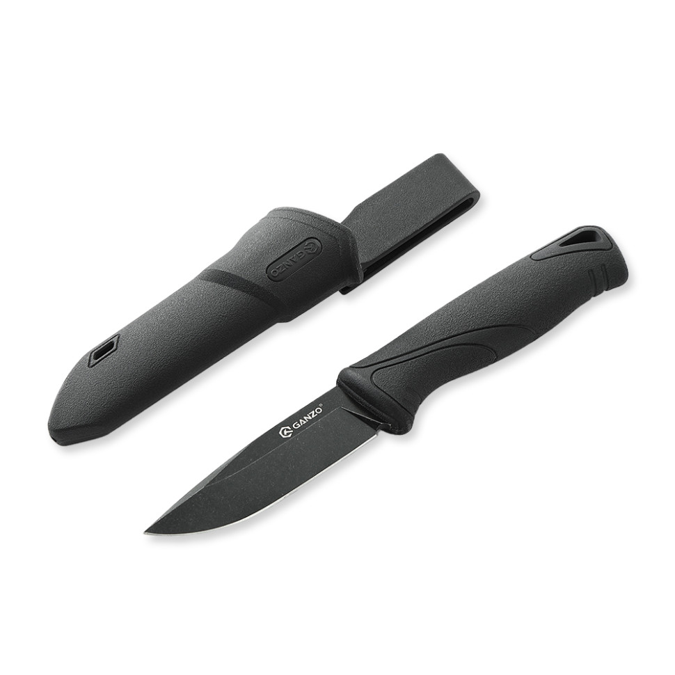 Фиксированный нож Ganzo G807BW с универсальным профилем Drop Point и прямой заточкой для точного реза и работы на укол. Клинок из нержавеющей стали 9Cr14MoV имеет черный матовый финиш. Нескользящая рукоять PP+TPR с отверстием для темляка. При длине 205 мм нож весит всего 96 г. Поставляется с фирменным чехлом, укомплектованным гибким зажимом для ношения на поясе.