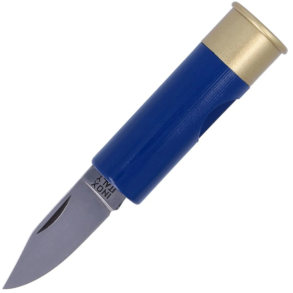 Кишеньковий патрон 12 калібру, нейлон, глянсове оздоблення. Невеликий ніж із ручкою, стилізованою під гвинтовий патрон 12 калібру. Компактний розмір, дуже легкий, чудовий помічник, коли раптово знадобиться щось гостре. Клинок із неіржавкої сталі універсальної форми