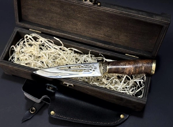 Ніж мисливський Nb Art Герб України 22k61 у подарунковому дерев'яному кейсі
