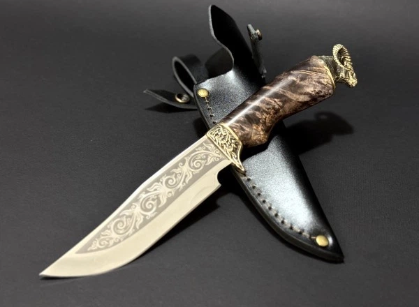 Ніж мисливський подарунковий Nb Art Баран 22k68 у шкіряному чохлі