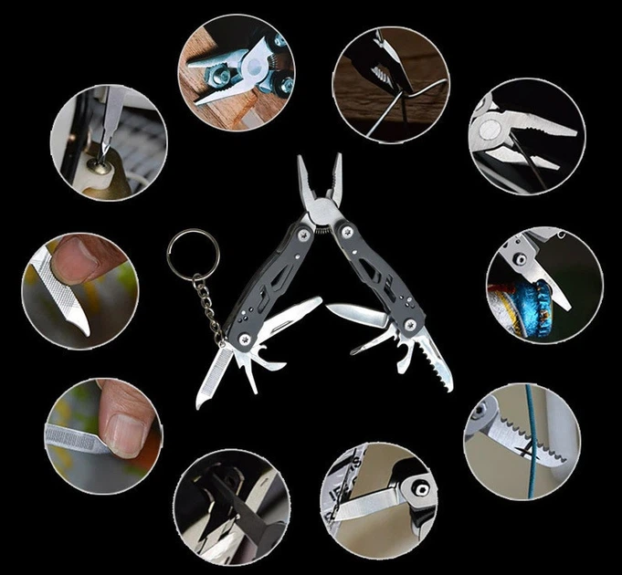 Плоскогубці багатофункціональні мультитул 9в1 з чохлом Чорний