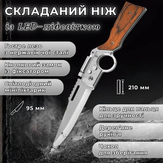 Складаний ніж із LED-підсвіткою AKKnife, чохол для зберігання у комплекті