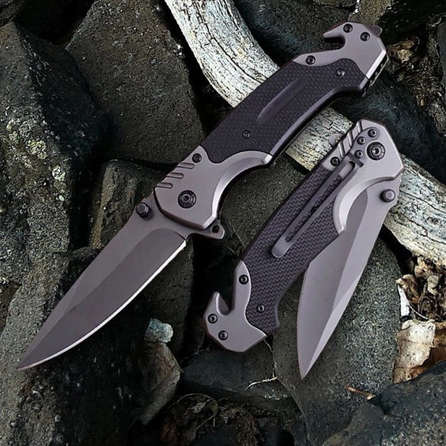 Ніж Складний (напівавтоматичний) Тактичний зі Склобоєм та Стропорізом 440С сталь