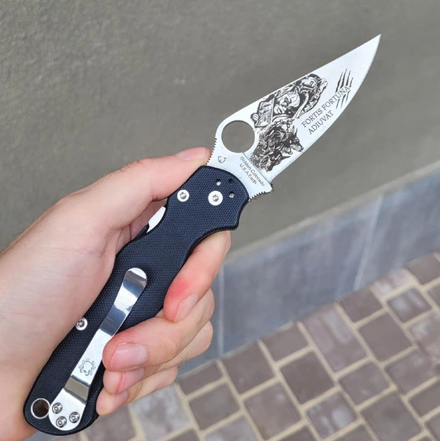 Тактичний складний ніж LazerTAC Spyderco Чорний (43801) + Індивідуальне гравіювання