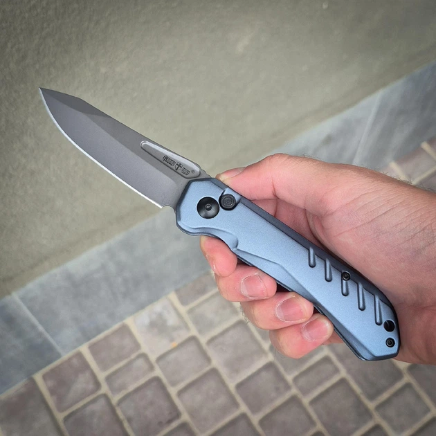 Автоматичний викідний ніж з індивідуальним гравіюванням LazerTAC Grand Way Складний Алюміній Сталь/Синій арт.7007 (138901)