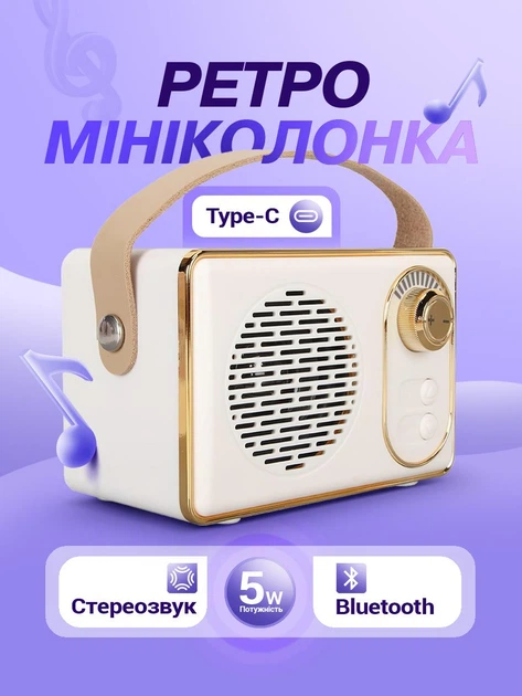 Бездротова портативна блютуз міні-колонка ретро для музики відпочинку подорожей потужна 5W сумісна з iPhone Android біла