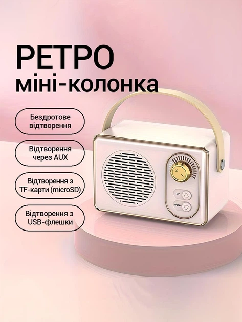 Бездротова портативна блютуз міні-колонка ретро 5W сумісна з iPhone Android для музики відпочинку подорожей рожева