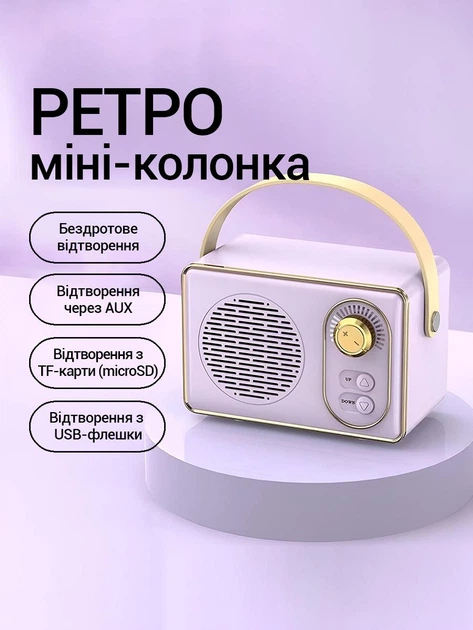 Бездротова портативна блютуз міні-колонка ретро 5W сумісна з iPhone Android для музики відпочинку подорожей фіолетова