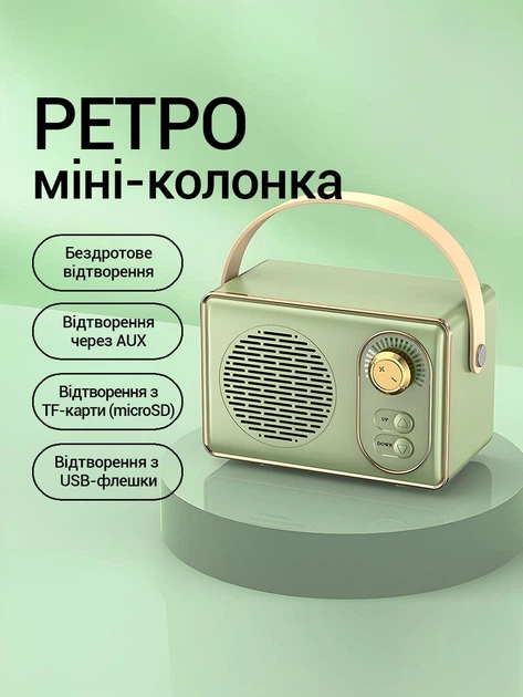 Бездротова портативна блютуз міні-колонка ретро 5W сумісна з iPhone Android для музики відпочинку подорожей зелена