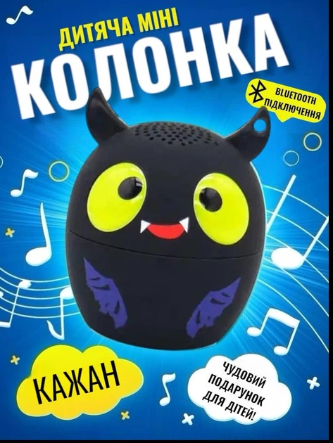 Дитяча портативна міні блютуз колонка ANIMAL кажан маленька акустична музична бездротова bluetooth акустика для дітей з функ