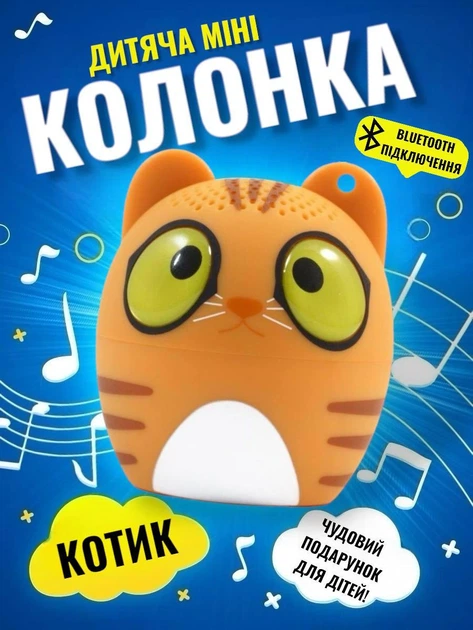 Дитяча портативна міні блютуз колонка ANIMAL котик маленька бездротова акустична музична bluetooth акустика для дітей з функ