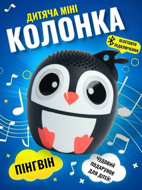 Дитяча портативна міні блютуз колонка ANIMAL пінгвін маленька бездротова акустична музична bluetooth акустика для дітей з фу
