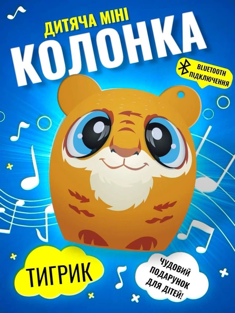 Дитяча портативна міні блютуз колонка ANIMAL тигрик маленька бездротова акустична музична bluetooth акустика для дітей з фун