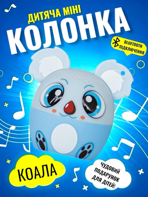 Дитяча портативна міні блютуз колонка ANIMAL коала маленька бездротова акустична музична bluetooth акустика для дітей з функ