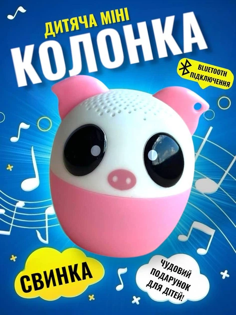 Дитяча портативна міні блютуз колонка ANIMAL свинка маленька бездротова акустична музична bluetooth акустика для дітей з фун