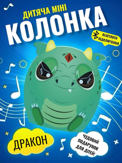 Дитяча портативна міні блютуз колонка ANIMAL дракон маленька бездротова акустична музична bluetooth акустика для дітей з фун