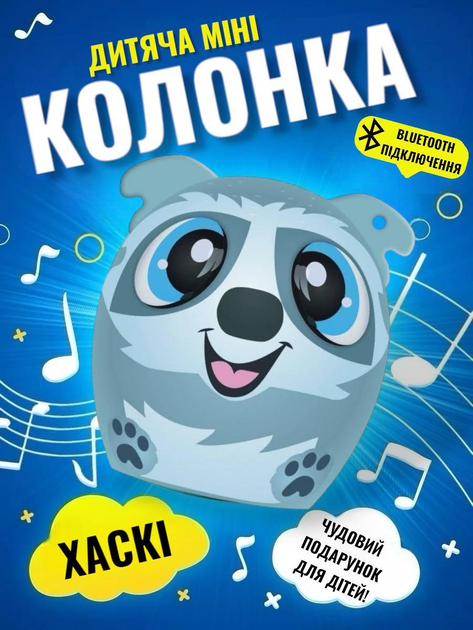 Дитяча портативна міні блютуз колонка ANIMAL хаскі маленька бездротова акустична музична bluetooth акустика для дітей з функ