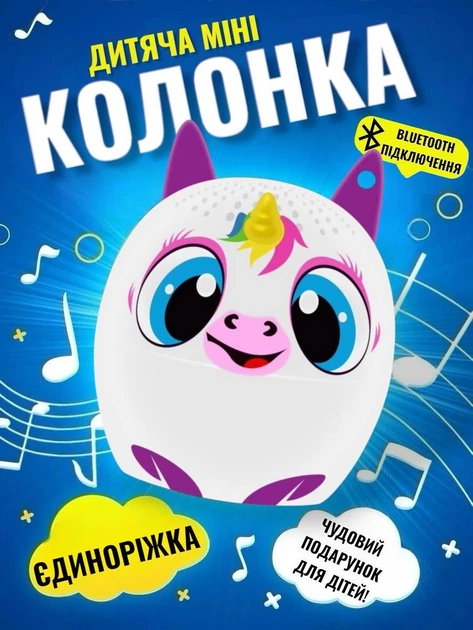 Дитяча портативна міні блютуз колонка ANIMAL єдиноріжка маленька бездротова акустична музична bluetooth акустика зефірка для