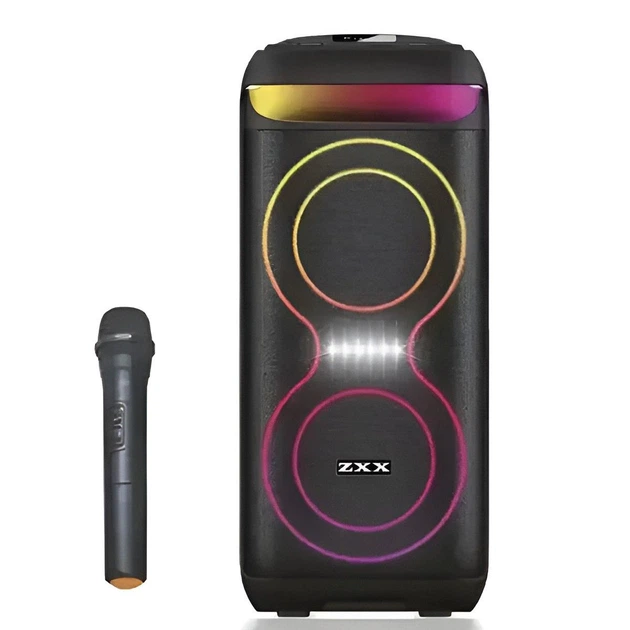 Портативна колонка ZXX-5512 Акустична система 60Вт RGB підсвічування з 2 мікрофонами та пультом 2х8" Чорний