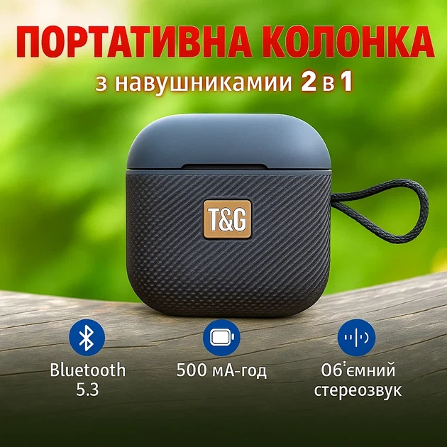 Портативна колонка-гарнітура TG809 2-в-1 з бездротовими навушниками, Bluetooth 5.3, чорна