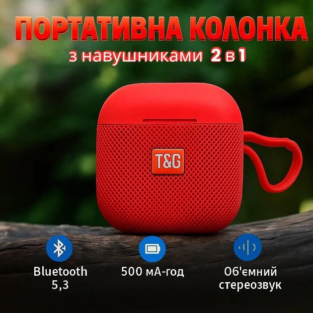 Портативна колонка-гарнітура TG809 2-в-1 з бездротовими навушниками, Bluetooth 5.3, червона