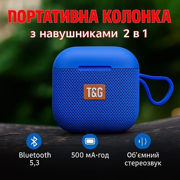 Портативна колонка-гарнітура TG809 2-в-1 з бездротовими навушниками, Bluetooth 5.3, синя