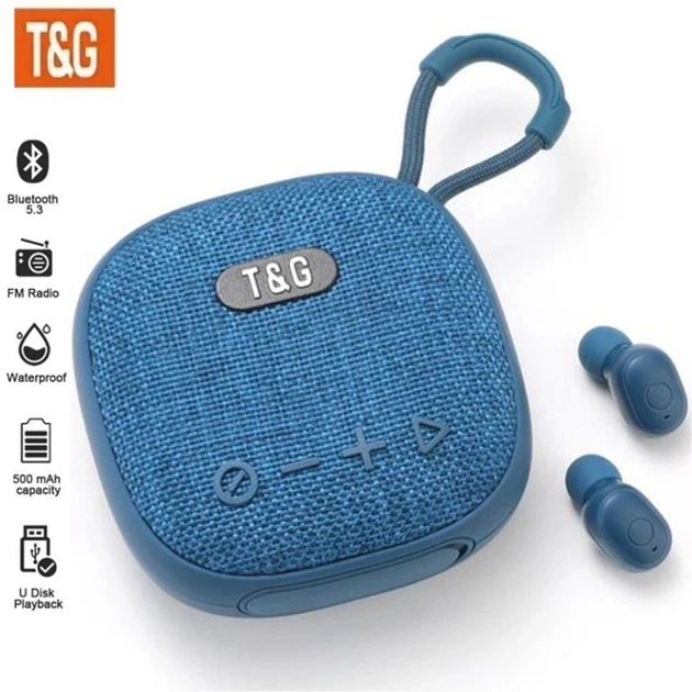 Портативна колонка TG-813 blue Bluetooth із навушниками
