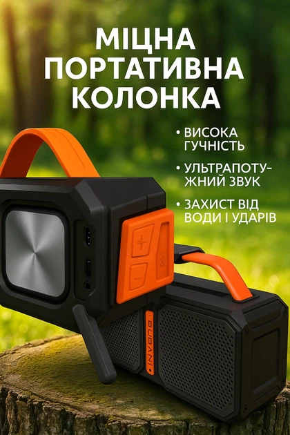 Бездротова портативна Bluetooth колонка BUGANI 60W BS21007 з потужним звуком, водозахистом IPX7, протиударним корпусом та ру