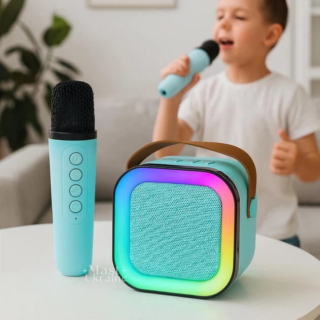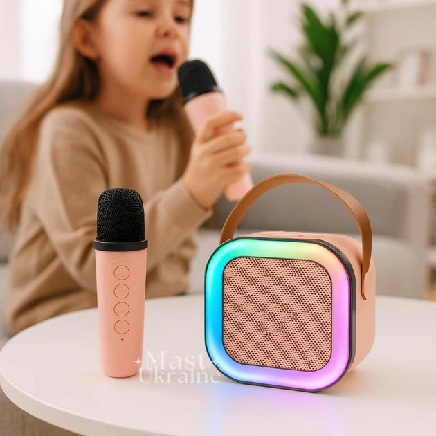 Караоке з бездротовим мікрофоном, портативна Bluetooth колонка з підсвіткою RGB, USB, TF, AUX, міні акустика з вбудованим ак