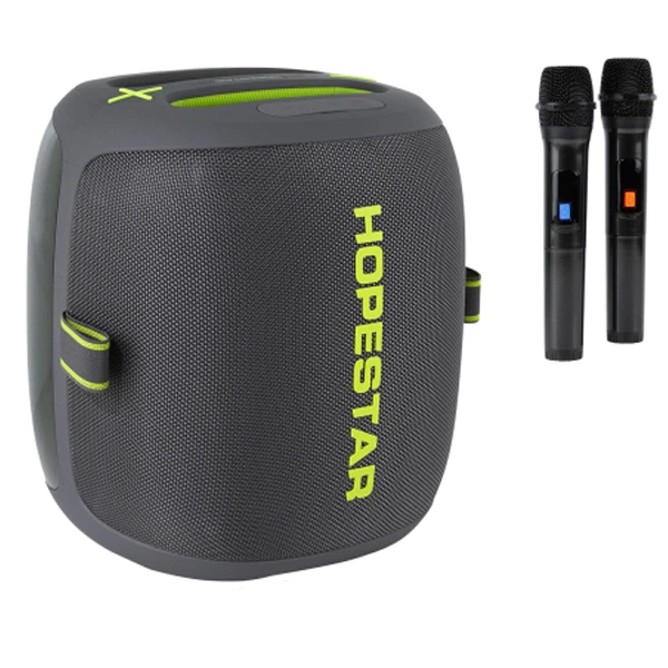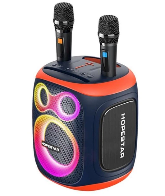 Портативна бездротова акумуляторна Bluetooth колонка 2 мікрофона караоке акустична система 120Вт з LED світломузикою Hopesta