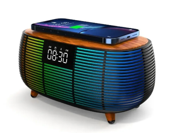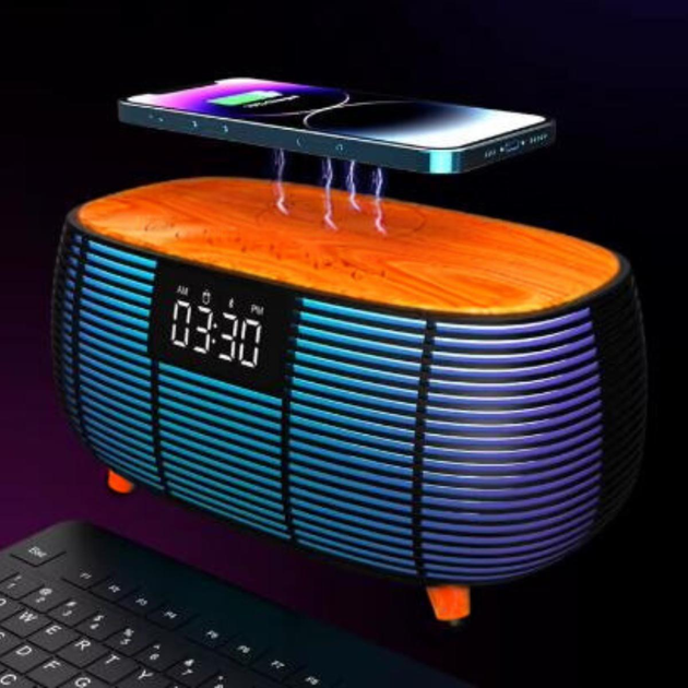 Портативна колонка з годинником та бездротовою зарядкою, бездротова Bluetooth колонка з RGB-підсвічуванням NSP-2312