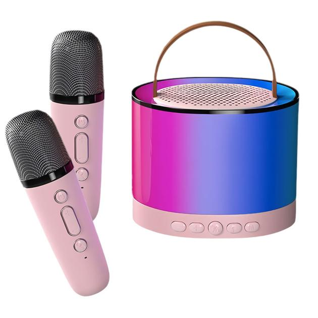 Портативна колонка з Bluetooth 2 караоке мікрофони RGB підсвічування K52/7597 рожевий