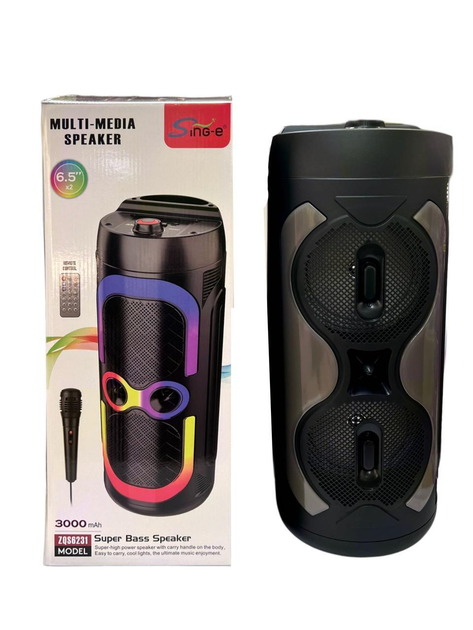 Портативна колонка ZQS6232 20 Вт з Bluetooth, FM-радіо, LED-підсвіткою, мікрофоном та пультом дистанційного керування.