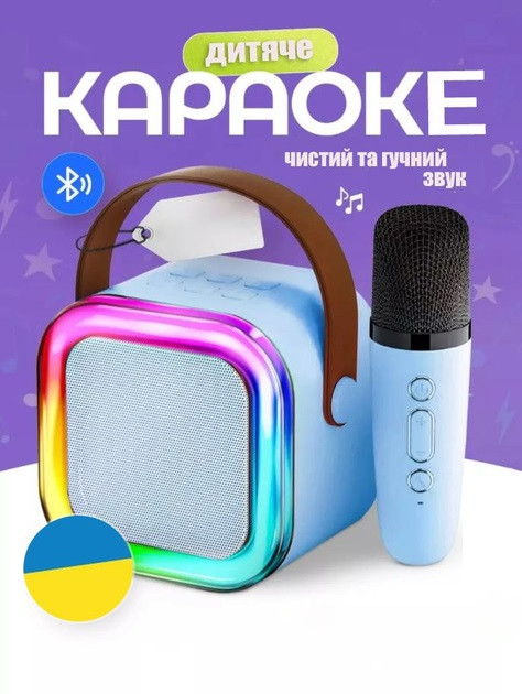 Портативна колонка K12 з RGB-підсвіткою міні-дитяча караоке з мікрофоном Синя 8918