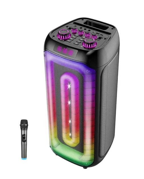 Колонка акумуляторна портативна 2x8" PartyBox 80Вт c радіомікрофоном караоке акустична система c LED RGB підсвічуванням USB/