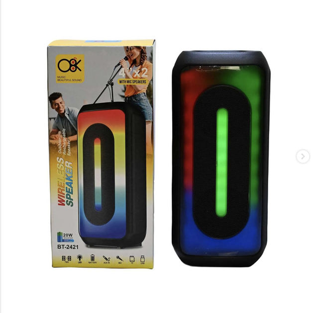 Колонка портативна акумуляторна Bluetooth Q8K 4"х2 потужність 20Вт з мікрофоном радіо та світломузикою UKC BT 2421
