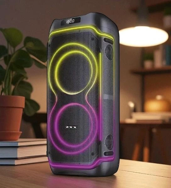 Колонка портативна ZXX Bluetooth з підсвічуванням акумуляторна, пультом та 2 мікрофонами, Чорний (5І55)