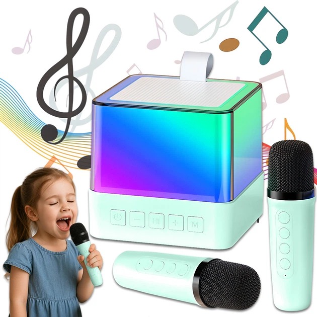 Бездротова Bluetooth-колонка з RGB-підсвіткою і 2 караоке-мікрофонами Music Hi