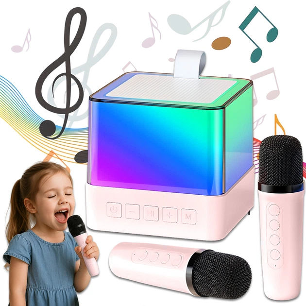 Бездротова Bluetooth-колонка з RGB-підсвіткою і 2 караоке-мікрофонами Music Hi Рожевий