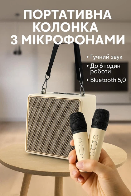 Портативна Bluetooth колонка M83 з двома мікрофонами, 20 Вт потужності, караоке, ремінцем для перенесення та стильним дизайн