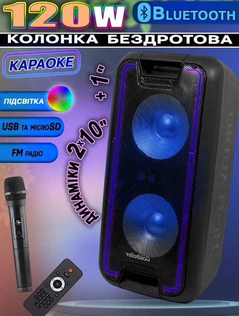 Потужна акустична система MHZ Goldteller 6067-120W Bluetooth колонка валіза з караоке мікрофоном та пультом