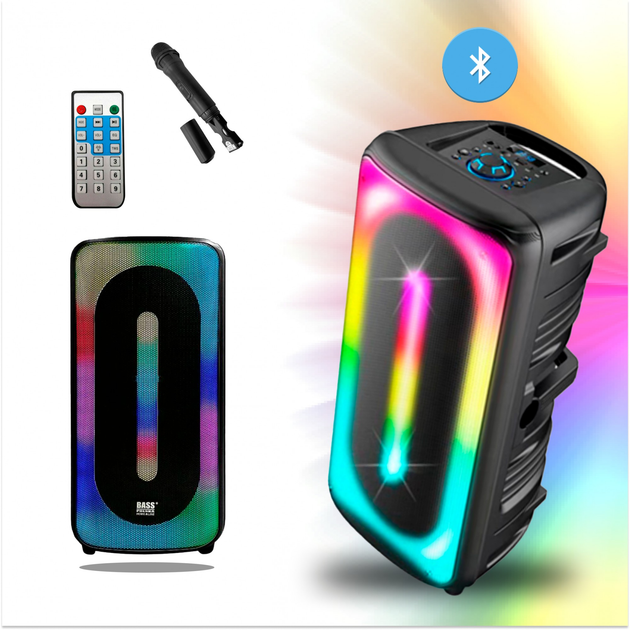 Портативна караоке колонка з Bluetooth та мікрофоном Bass Polska BH 15945, акумуляторна колонка з підсвічуванням та пультом