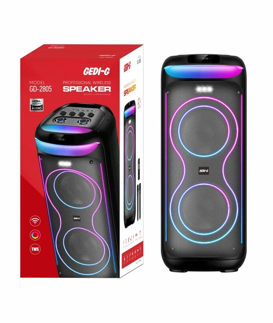 Портативна активна колонка-комбік Gedi з 2 бездротовими мікрофонами 400 Вт +караоке режим, 2*8" динаміка, Bluetooth, FM, USB