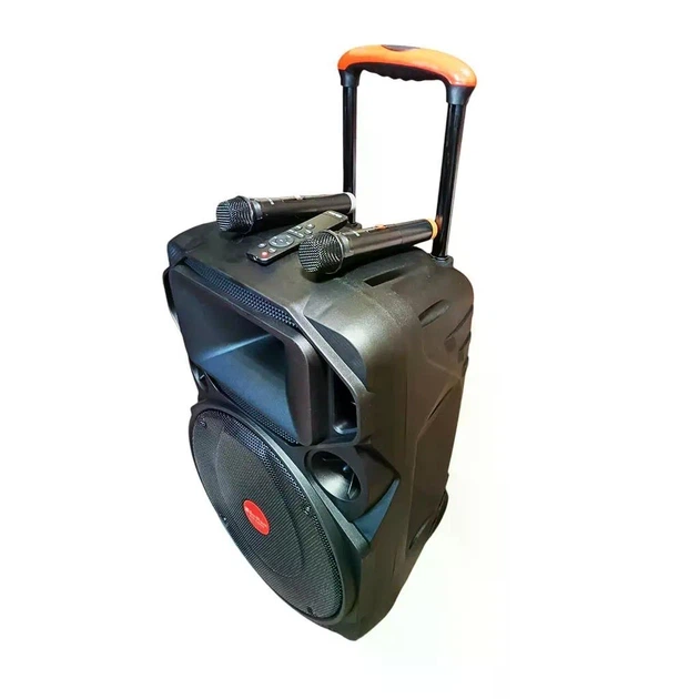 Портативна активна акустична колонка Su-Kam SU 615 з Bluetooth, USB, SD, AUX та двома радіомікрофонами, з автономним живленн