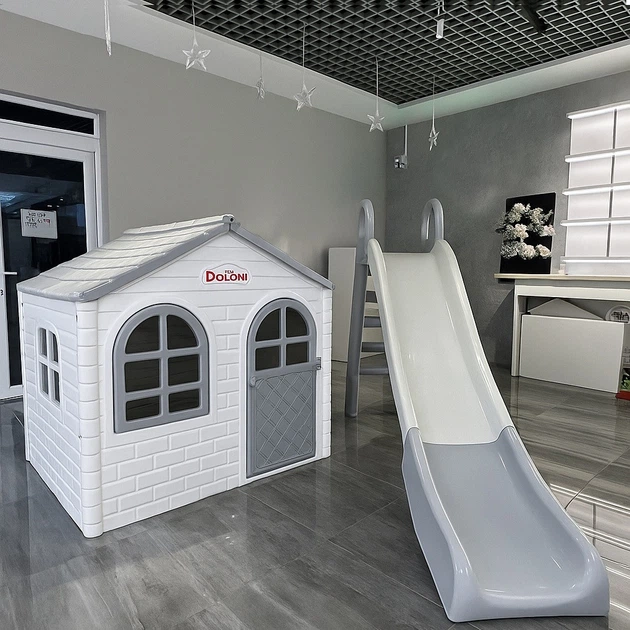 Набір дитячий ТМ Doloni Будиночок XL та гірка велика 243 см, біло-сірий