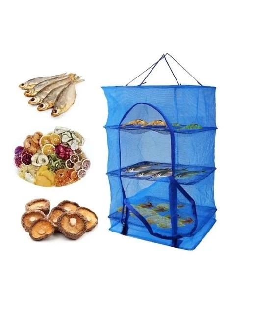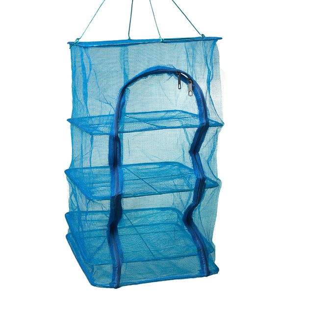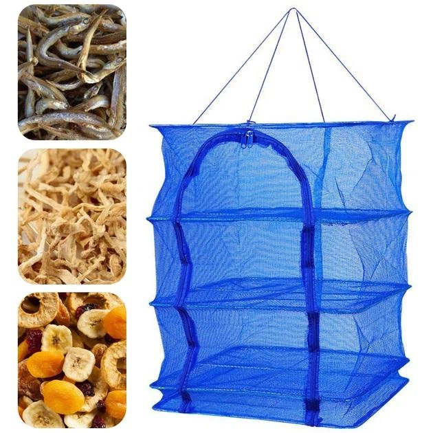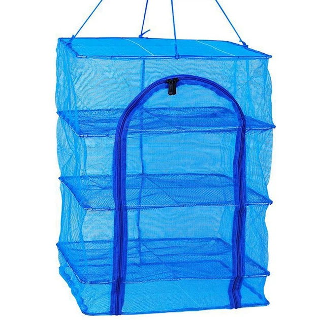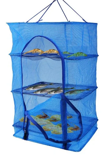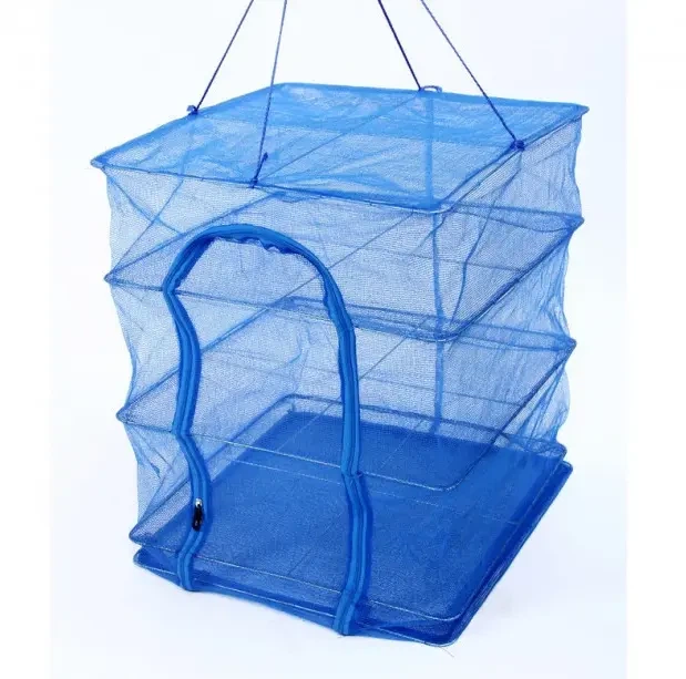Сітка сушарка підвісна для сушіння риби, фруктів, овочів, грибів 45х45х65 см 3 рівні синій (R051548)
