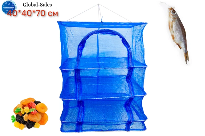Складна Сітка для сушіння риби та фруктів 50х50х70 см Синій на 3 яруси (908142)