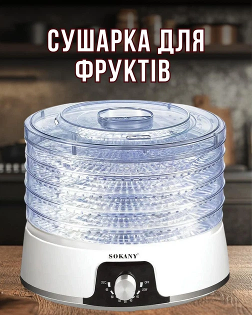 Сушарка для фруктів та овочів електрична 350 Вт 5 лотків Sokany