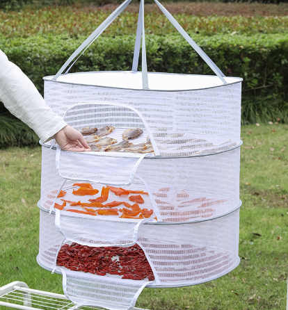 Сітка для сушіння риби, фруктів, овочів, грибів підвісна сушарка навісний дегідратор 3 яруси 50х70х40 см біла (SVS)
